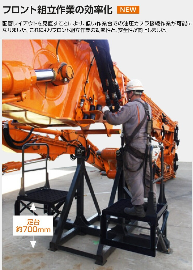 大きな重機はそのままの状態では船やトラックに乗せて運ぶことが困難です。そのため、あらかじめ分解しやすい作りになっています。大きなショベルカーの場合には、前側のショベルの部分が外れ、車体と切り離すことができます。これによって100tを超えるような大きな重機であっても海上輸送、陸上輸送が可能になっています。そして分解された重機は、目的地に到着後、現場でパーツを組み立てていきます。