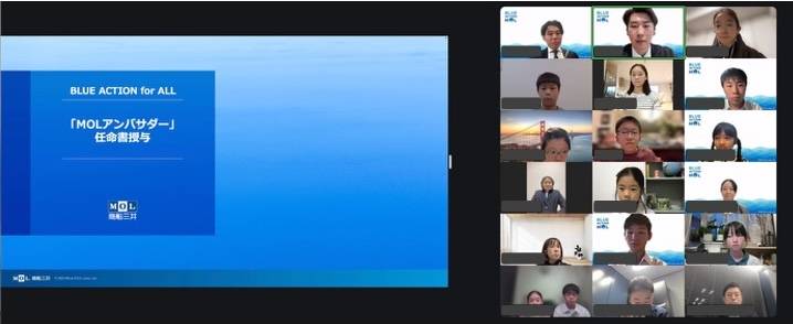 任命書の授与では、商船三井 執行役員 チーフ・サステナビリティ・オフィサー 引間から任命書をオンライン上にてMOLアンバサダーへ授与し、その後MOLアンバサダーに一人ずつ意気込みを話してもらいました。